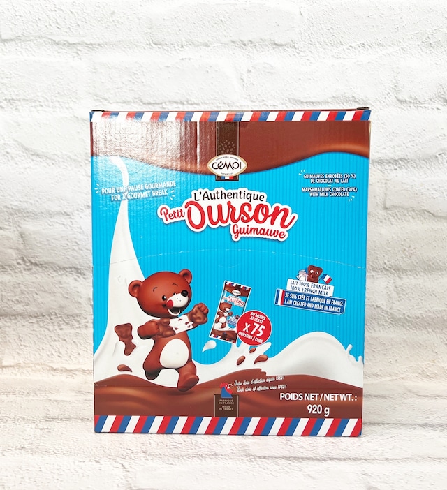フランスの老舗チョコレートメーカー CEMOI が手掛ける、ふわふわマシュマロをミルクチョコで包んだ人気のお菓子。 可愛いくまさんの形が特徴で、見た目も味もやさしい癒し系スイーツです。 たっぷり約75個入りで、パーティーやイベント、シェアにもぴったり! 柔らかいマシュマロとまろやかミルクチョコの相性は抜群。 フランス産100%ミルク使用でコクがありながら、軽い口当たりでついついもうひとつ手が伸びてしまいます。