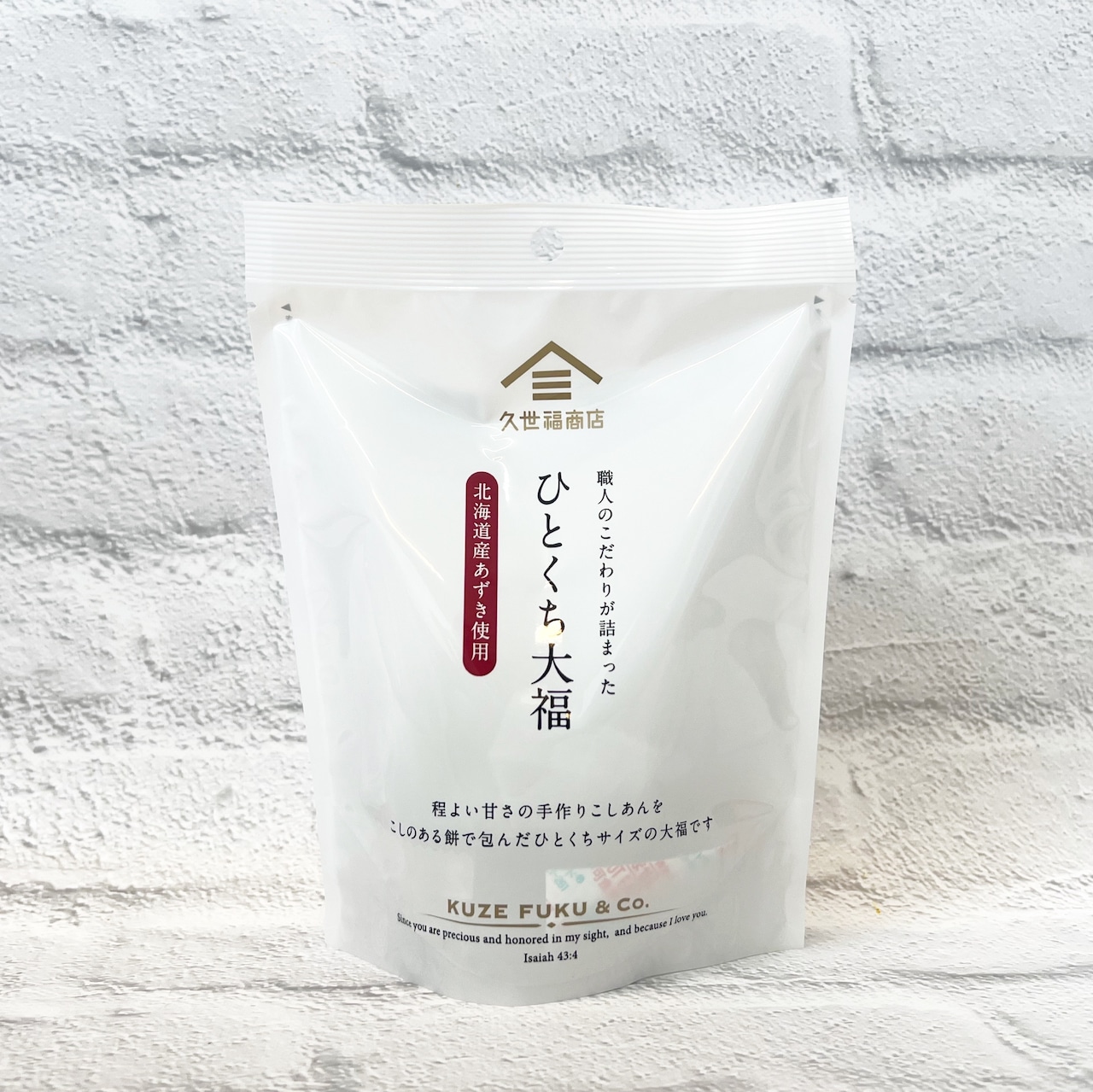 北海道産あずきを使用した程よい甘さの「こしあん」を、コシのあるやわらかなお餅で包み込んだ、ひとくちサイズの大福です。