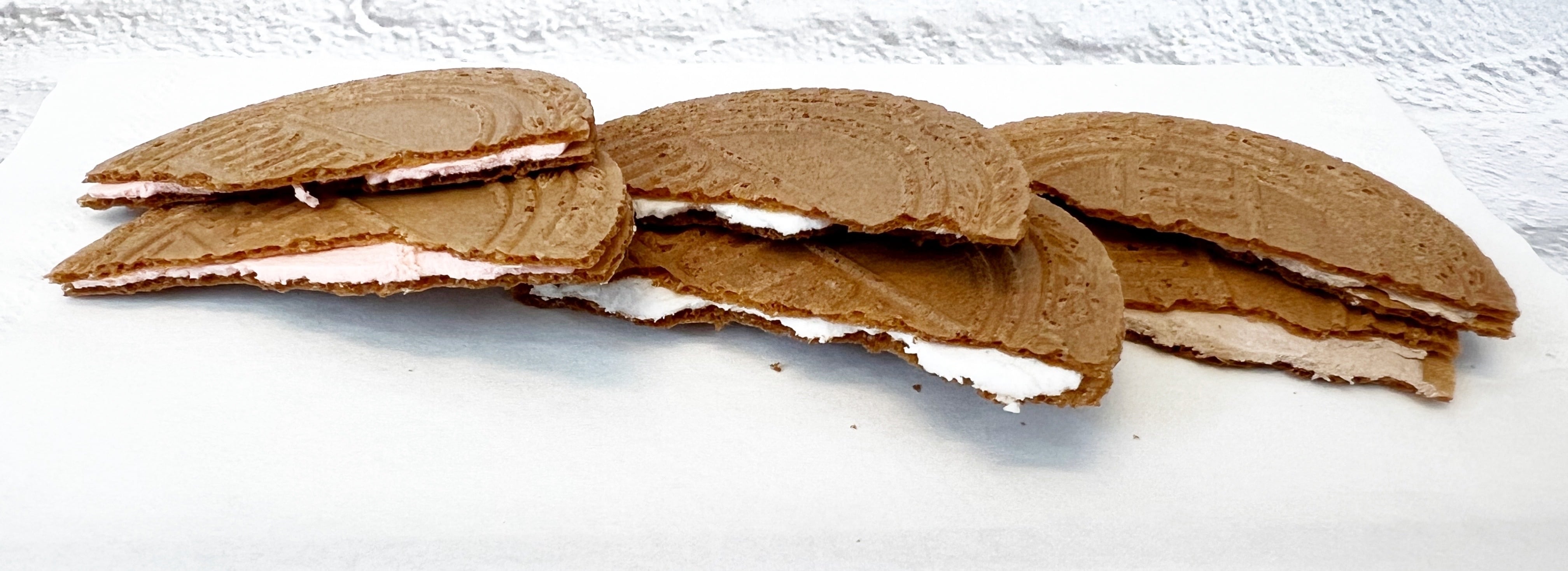薄焼きの軽やかな生地にクリームをサンドし、上品な甘さと香りが広がる人気のお菓子。