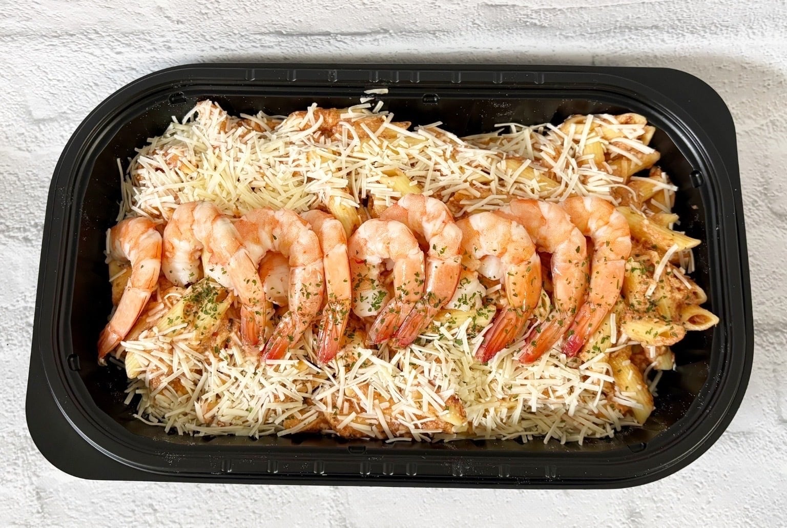 ぷりっとした大ぶりのえびを贅沢にのせたシュリンプペンネロゼ。