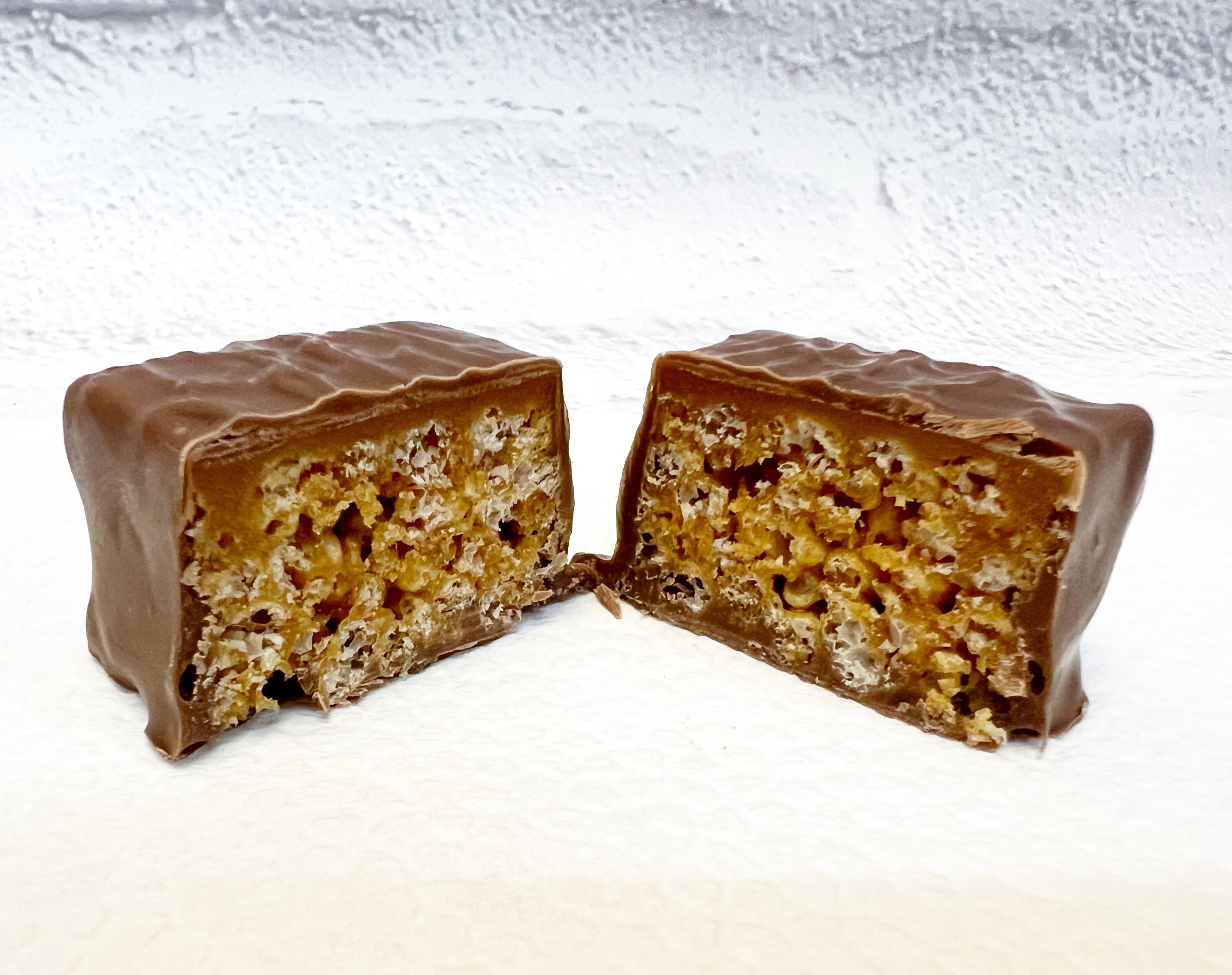 チョコレートで、香ばしいキャラメルクリスプを贅沢にコーティング。