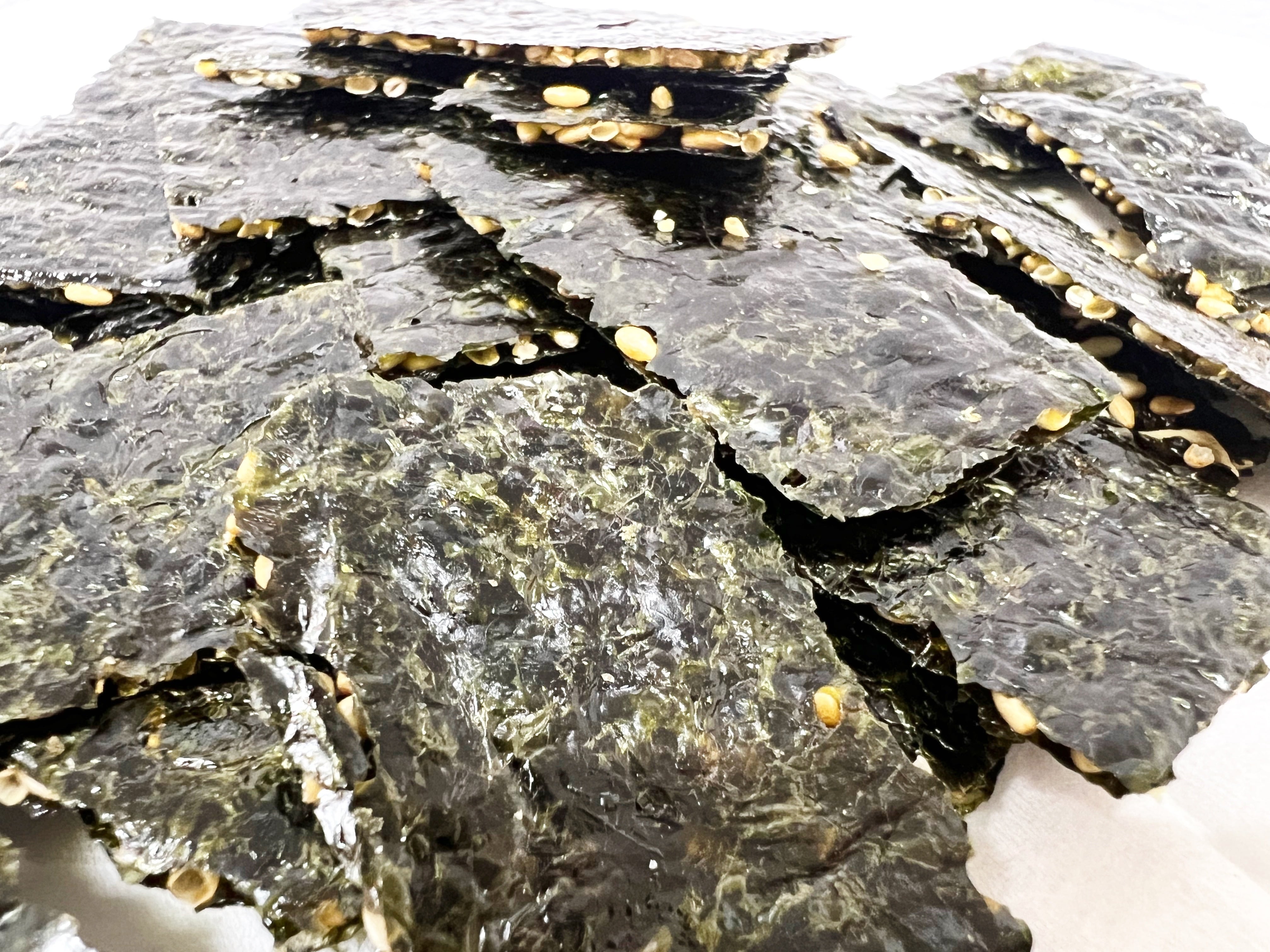 韓国産の上質な海苔を使用し、香ばしく炙った海苔の間に カリカリ小魚 をサンドしたユニークなスナック。